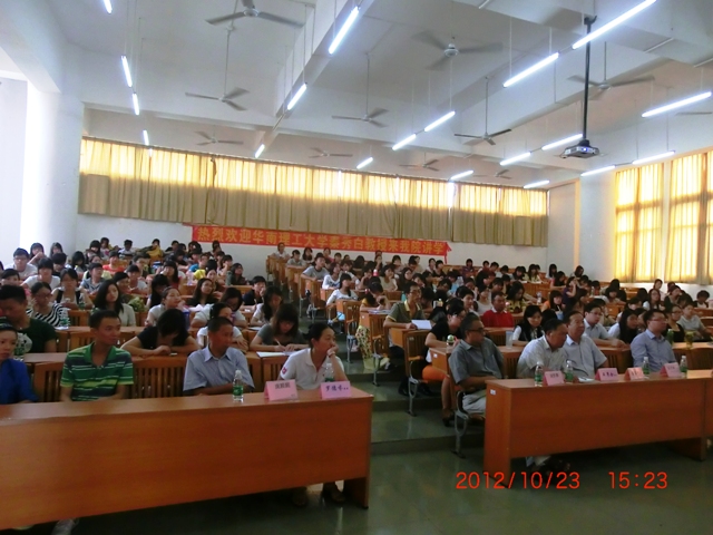 2012年10月23日(星期二)下午15:00,著名英语专家,华南理工大学外国语学院教授、博士生导师、学科带头人秦秀白教授应华商学院外语系的邀请,在励志楼C308开展了《有关高校英语教育和教学的几点思考》学术讲座。外语系师生共200余人到场听取了讲座。