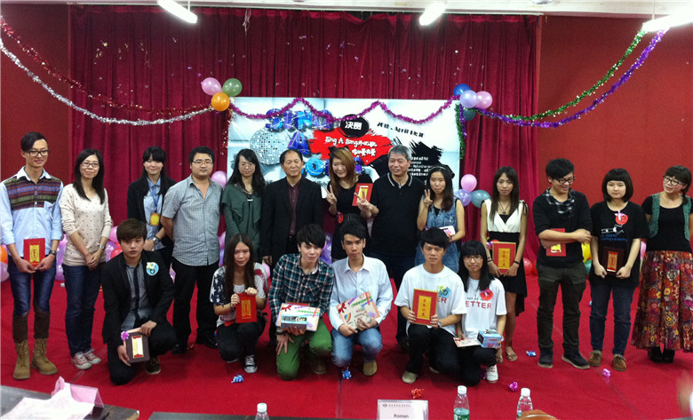 比赛现场座无虚席,同学们纷纷拿出相机、手机记录比赛的点滴。选手们全心投入,各显风采,把现场推进到一个又一个高潮。慢歌小桥流水,深情悠远;快歌动感十足,热血激昂。快慢歌的相互交错,选手们声线的完满融合,直接把现场气氛推到了最高点。小小的教室容得下满怀热情的观众,却抑制不住激昂的歌声。现场能感受到的不仅是动听的歌声,还有同学们对外语的热爱,对音乐的执着追求。本次比赛最后由艺术系的谭惠芝同学和会计系谢梓灏同学的组合获得一等奖,而外语系胡润之同学则摘下了最佳人气奖。