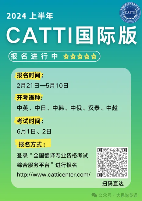 3. 关注微信公众号“CATTI中心”及“Inter Catti”,获取最新考试信息。