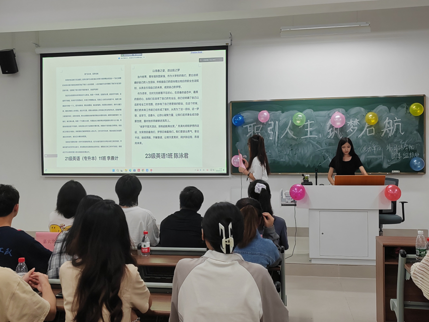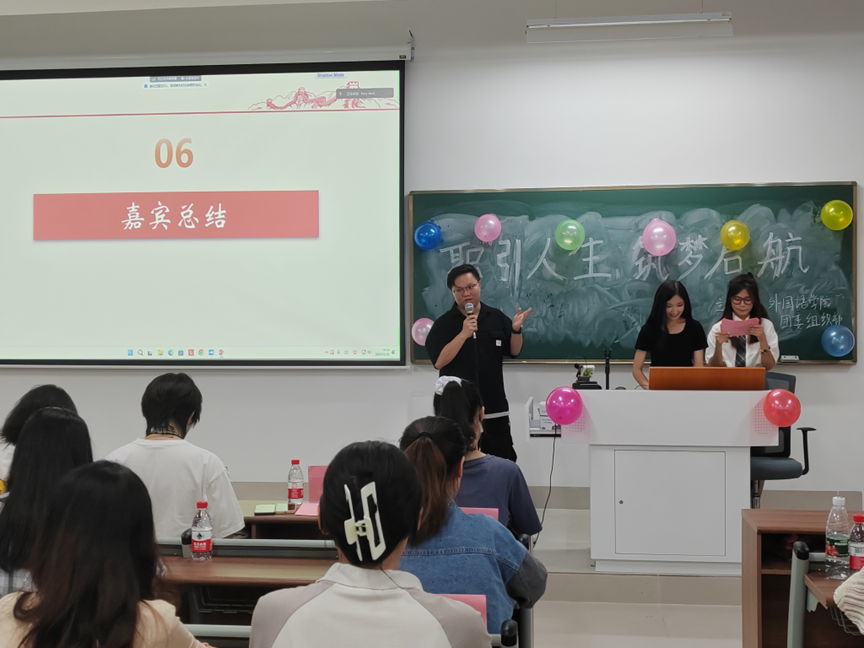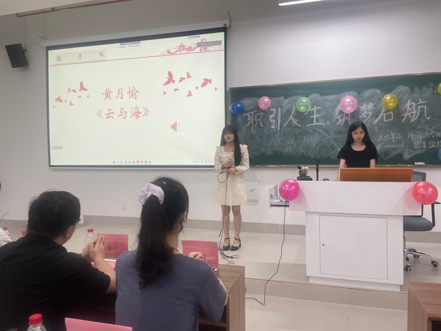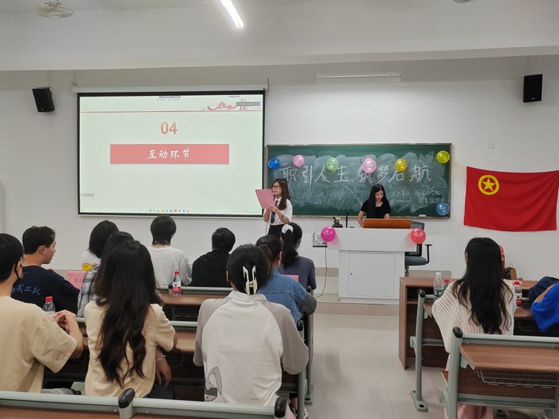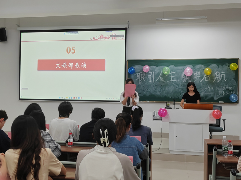 为深入学习宣传贯彻党的二十大学习精神,以及中央经济工作会议提出的“把促进青年特别是高校毕业生就业工作摆正在更加突出的位置”的要求,引领大学生立足实际,找准定位,树立理性、平实的择业观和就业观,主动到基层一线“自找苦吃”、踏实奋斗、成长成才。作为新时代青年,我们要树立正确的择业观、就业观,引导就业预期,科学把握就业方向和职业目标,为将来的走上工作岗位后摆正工作态度、提升工作业绩打下坚实基础。因此,外国语学院团委以“‘职’引人生,筑梦启航”为主题于2023年10月25号在肇庆校区十六号楼202教室举办了十月团生总结大会。