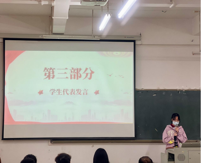 外国语学院学生会主席团成员孔颖铧同学作为学生代表发言,她提到本次文明安全纪律教育月主题教育活动与每位同学都息息相关,我们要从从遵守校纪校规、保障人身安全、维护财产安全、注意网络安全、确保消防安全、维护交通安全等各个方面学习贯彻教育月的精神,她呼吁大家一起积极培养安全意识,共同打造更美好的校园生活。