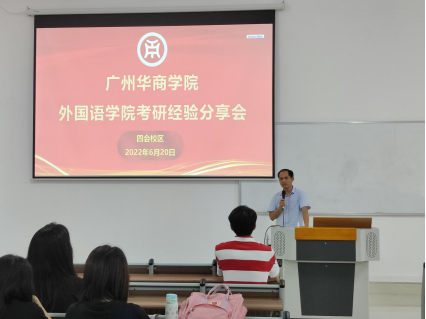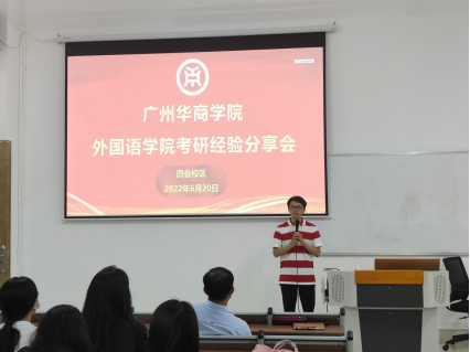 为了帮助菁才班的同学们更好地了解考研形势,激发同学们的考研意愿,早日制定考研规划,外国语学院邀请2022届考上研究生的代表张泳园同学于2022年6月20日在四会校区6号楼304开展考研经验分享会。出席本次活动的嘉宾有外国语学院副院长陈少鸿老师、学工副主任何顺发老师、外国语学院辅导员陈禄汉老师。讲座由何顺发老师主持。