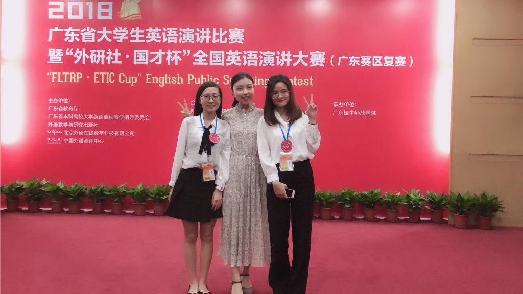 外语系王主任、杨主任和陈主任对此次比赛大力支持,黄琼慧老师的辛勤指导,我校2016级英语专业的陈敏同学、2016级国际贸易专业肖晓楠同学代表我校参加了此项比赛,最终夺得广东省一等奖和三等奖。