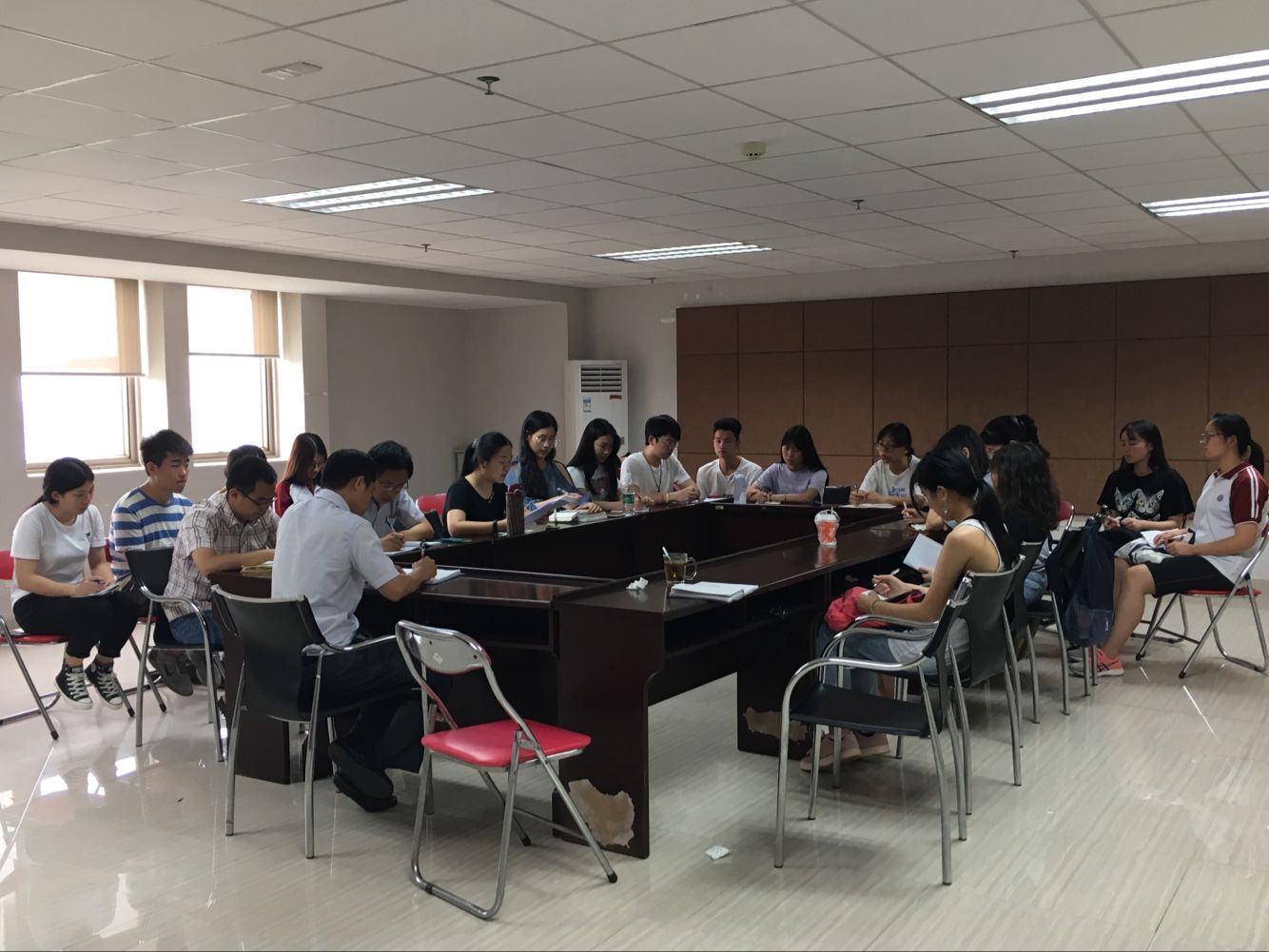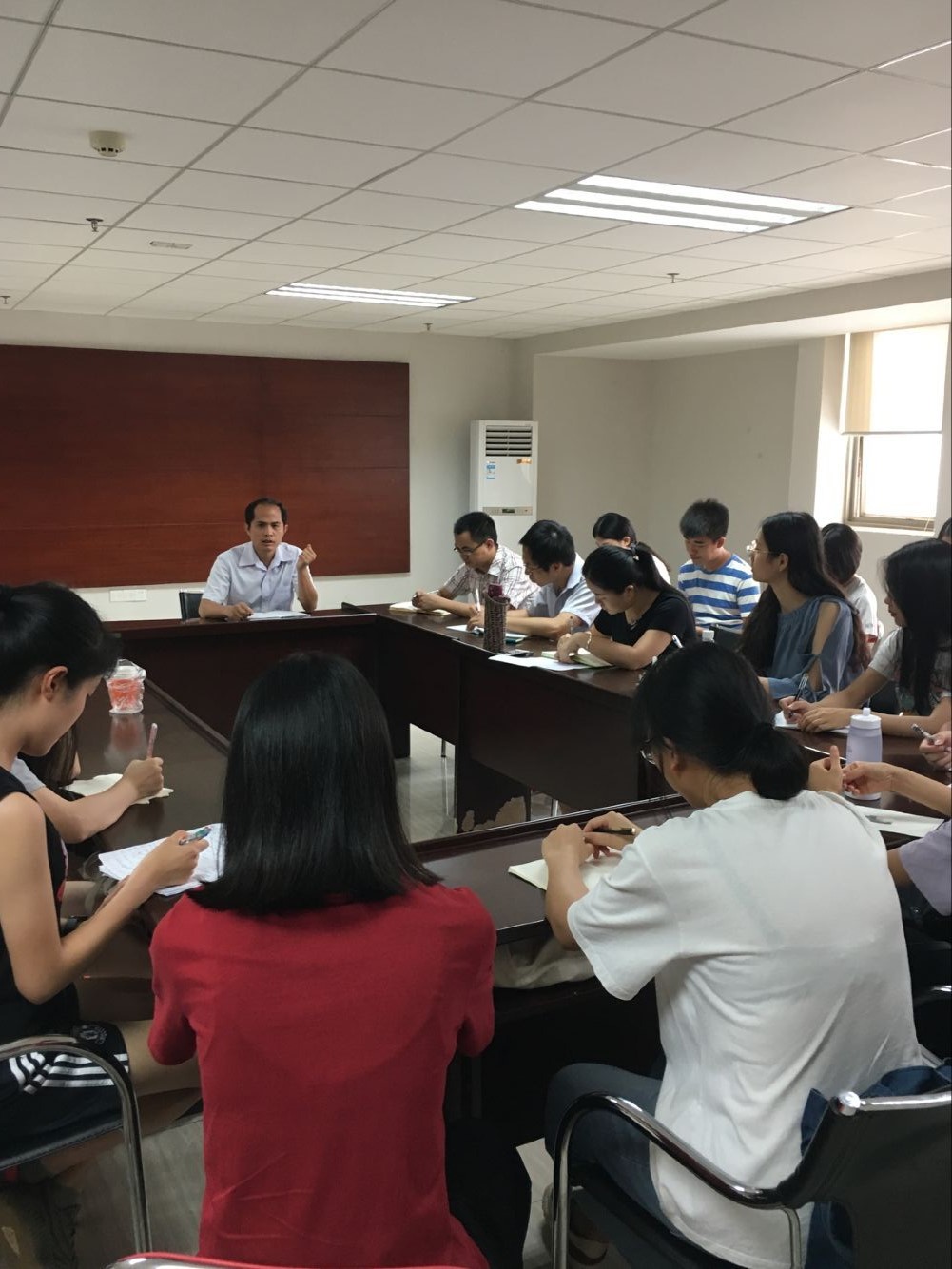 2018年5月17日上午8:40,外语系于行政楼407召开文明安全纪律教育学生座谈会。出席本次座谈会有外语系主管学生工作副主任陈少鸿老师,16-17级辅导员以及16-17级班级班长。