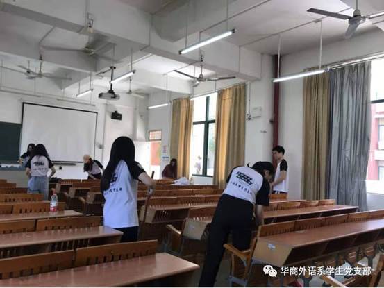 2019年10月23日,广东财经大学华商学院外国语学院学生党支部在励志楼举办了主题为“坚守初心,于生活点滴践行”的清扫教室公益活动,学生党支部的党员们皆积极投身参与这次的活动。