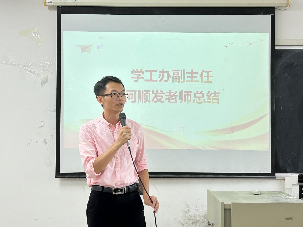 9月29日中午12:15,外国语学院2024年安全教育大会在广州华商学院广州校区厚德楼C202教室正式举行,学工办副主任何顺发老师、辅导员张超老师、张艳娥老师、江嘉丁老师及全体学生干部代表参加了此次会议,本次会议由钟学恒同学主持。